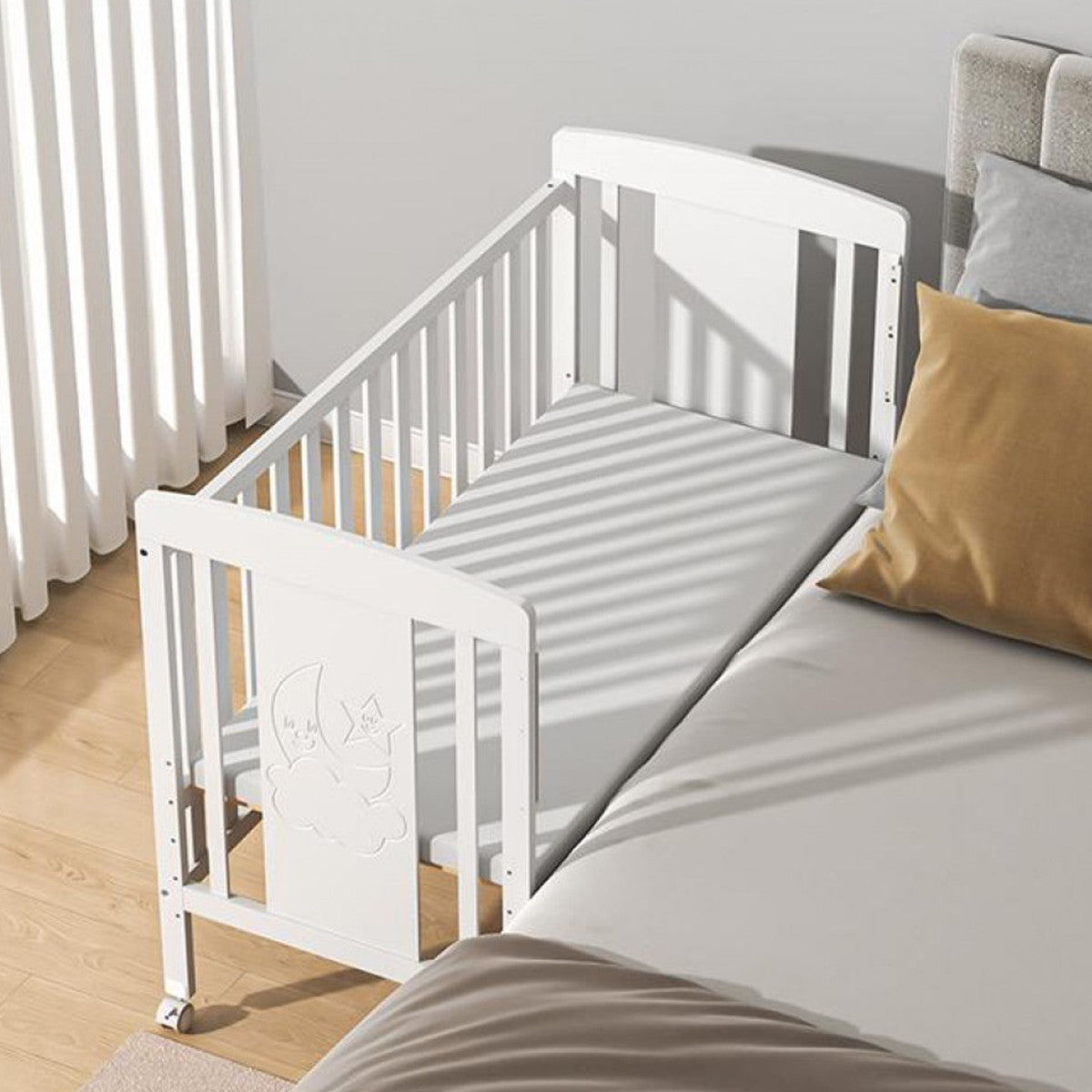 • Podesiva bočna stranica – lako se pričvršćuje uz roditeljski krevet