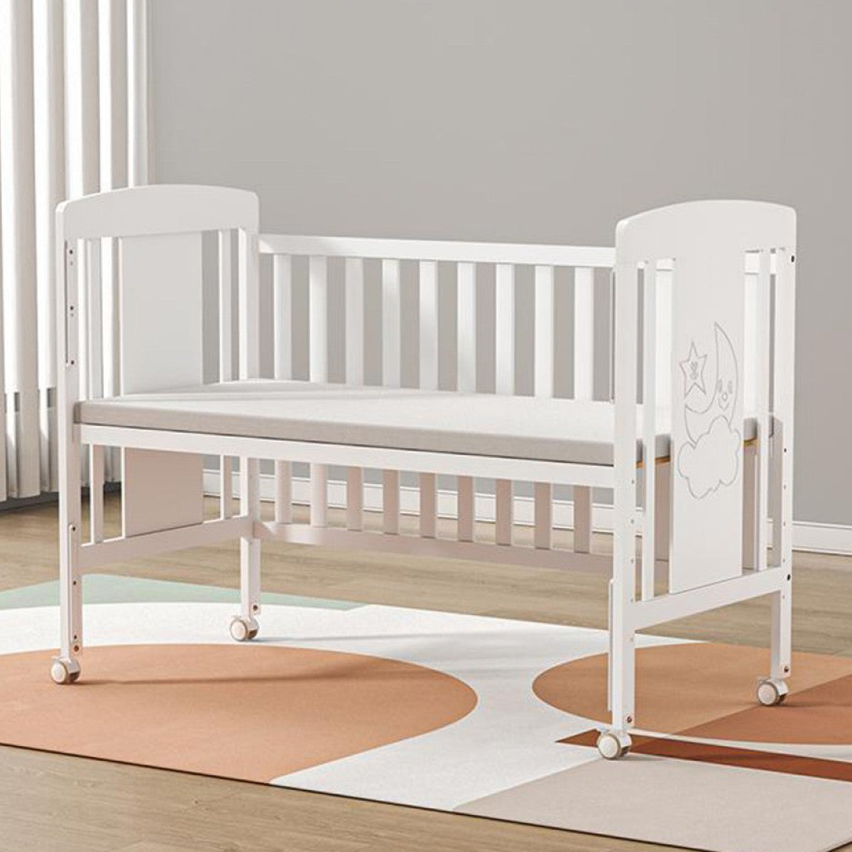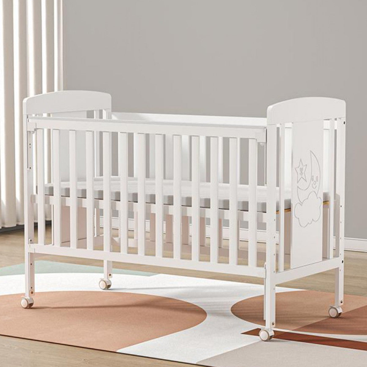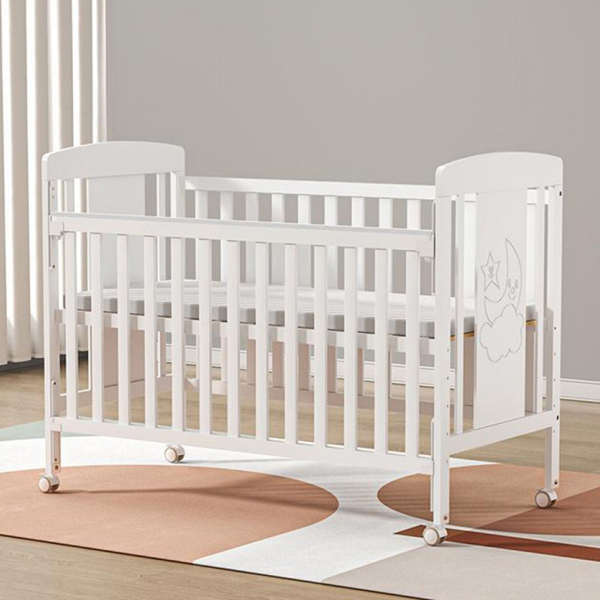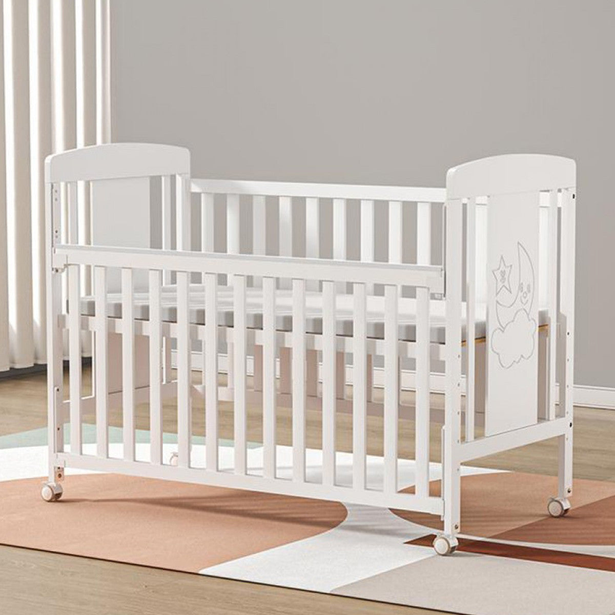 Izrađen od kvalitetnog drveta novozelandskog bora, ovaj drveni krevetac pruža sigurnost, stabilnost i udobnost za vašu bebu od prvih dana. Elegantna bela boja uklapa se u svaki enterijer, dok praktičan i funkcionalan dizajn prati rast i potrebe deteta.