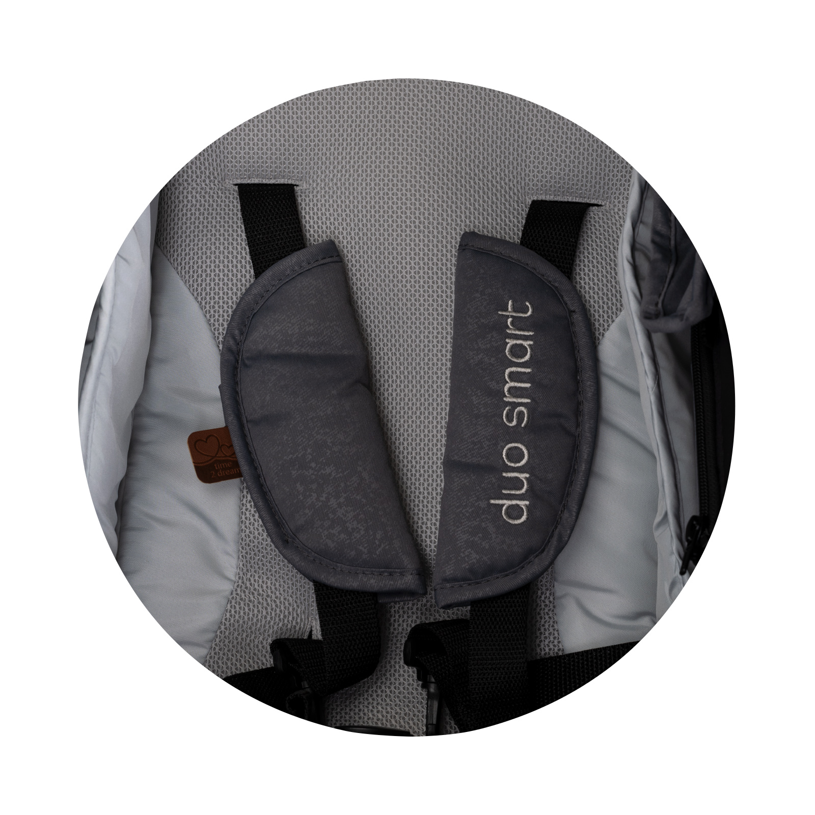 Model Duo Smart se po mnogome razlikuje od većine blizanačkih kolica na koja ste verovatno naišli u svojoj potrazi za kolicima. Ona su jedna od retkih koja imaju kombinovan tip sedišta, te se ono u dva poteza lako pretvara u meku korpu sa ravnim položajem idealnim za novorođenčad. Sedišta su individualno podesiva, jer znamo da su potrebe svakog deteta drugačije – sedišta možete postaviti u oba smera kretanja, a naslon za leđa i oslonac za noge se takođe prilagođavaju.
