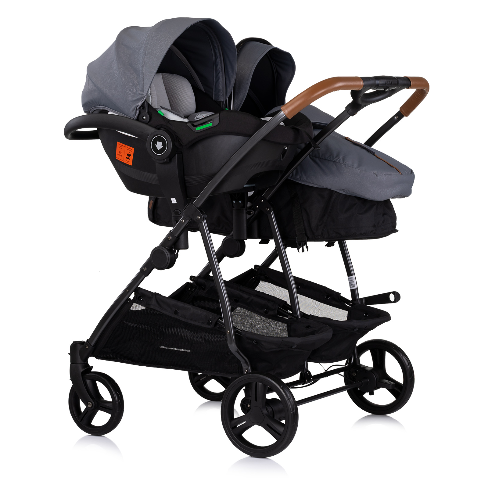 U setu dolazi aluminijumski ram kolica sa dva sportska sedišta, dva auto sedišta, dve navlake za noge sa dva meka uloška za sedišta, kao i torba sa podlogom za povijanje za sve stvarčice koje vam mogu biti neophodne tokom šetnje. Uz auto sedišta dobijate i adaptere kako biste mogli da ih postavite na sam ram kolica.