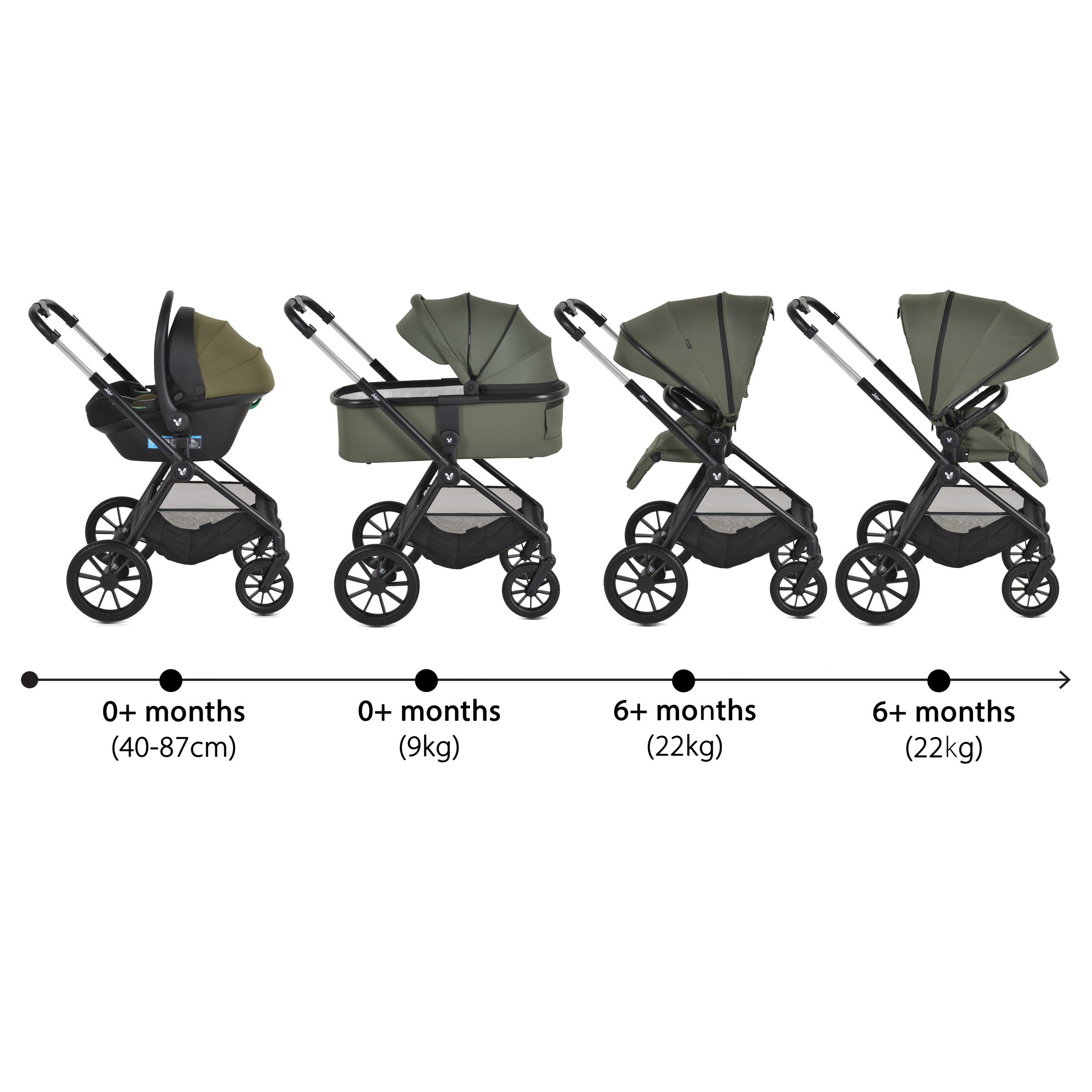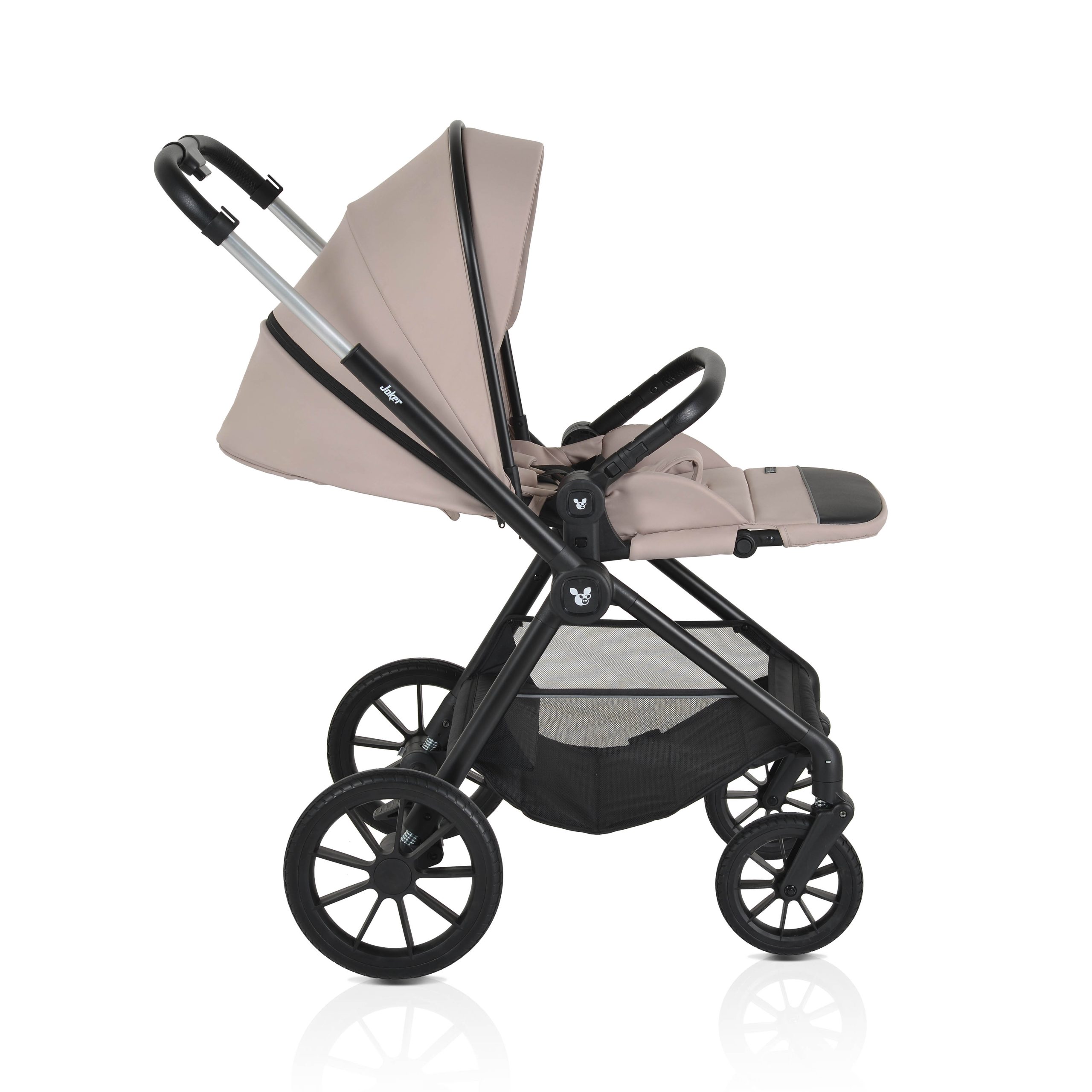Kompletan set uključuje ram, korpu za nošenje, reverzibilno sedište, i-SIZE auto-sedište (40–87 cm) i praktične dodatke za svaku šetnju.. Sedište će osigurati bezbednu vožnju, lako se montira i odgovara svim modelima automobila sa sigurnosnim pojasem. Kada niste na putu, auto sedište možete postaviti na sam ram kolica pomoću adaptera koji dolaze u setu.